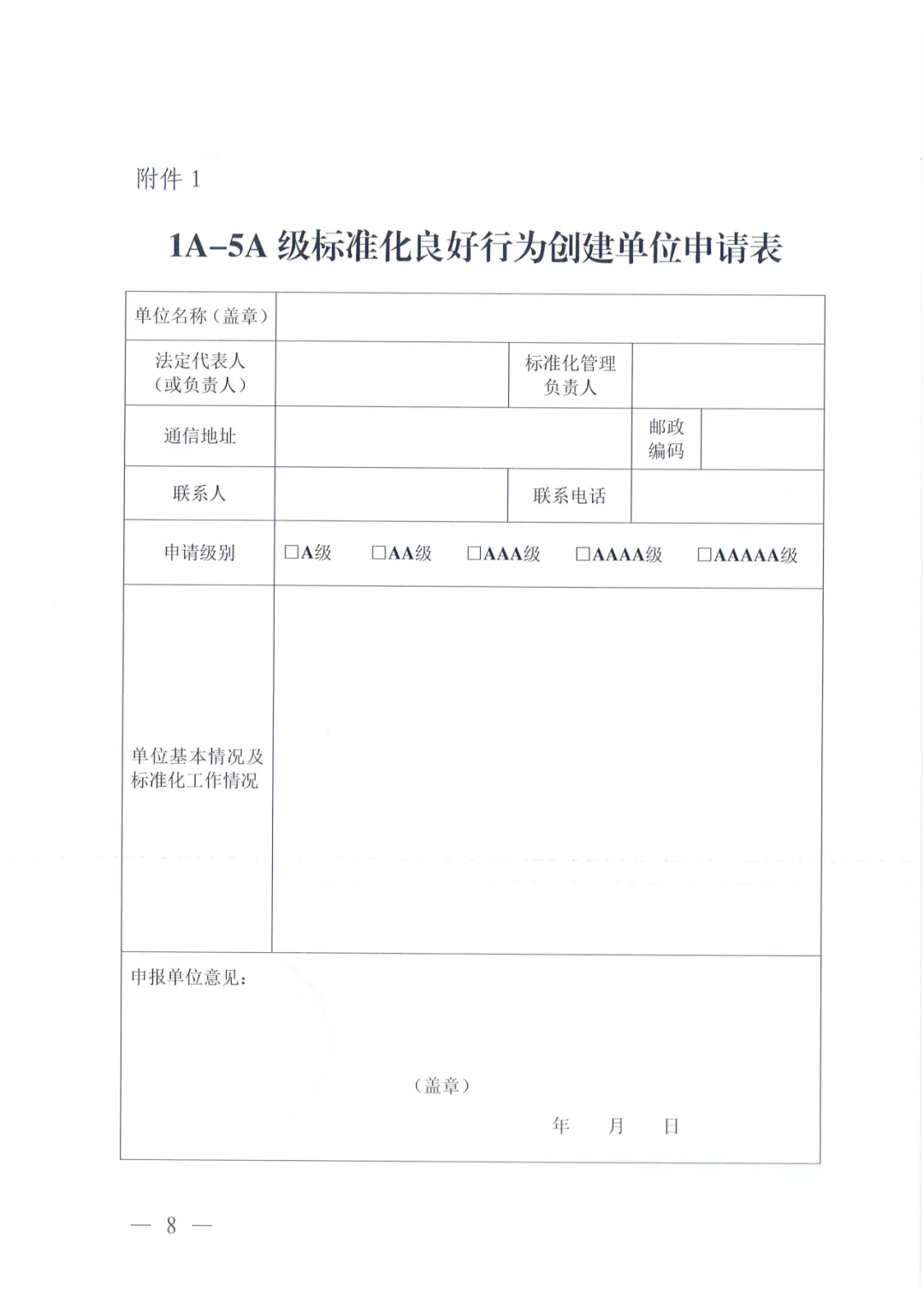 2.附件:1A-5A级标准化良好行为创建单位申请表