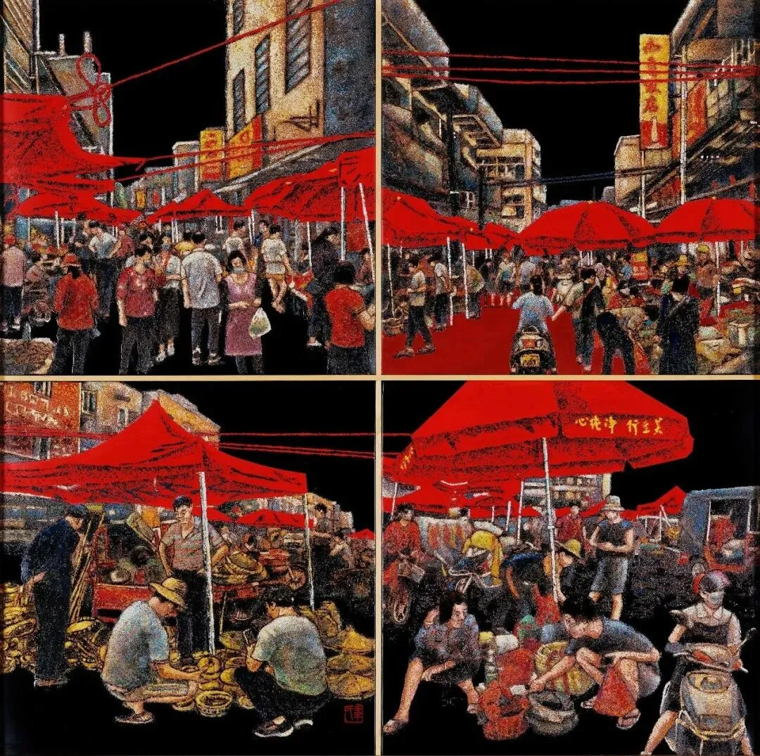 车超鸿《故墟新貌之二》漆画 38x38cmx4 广东