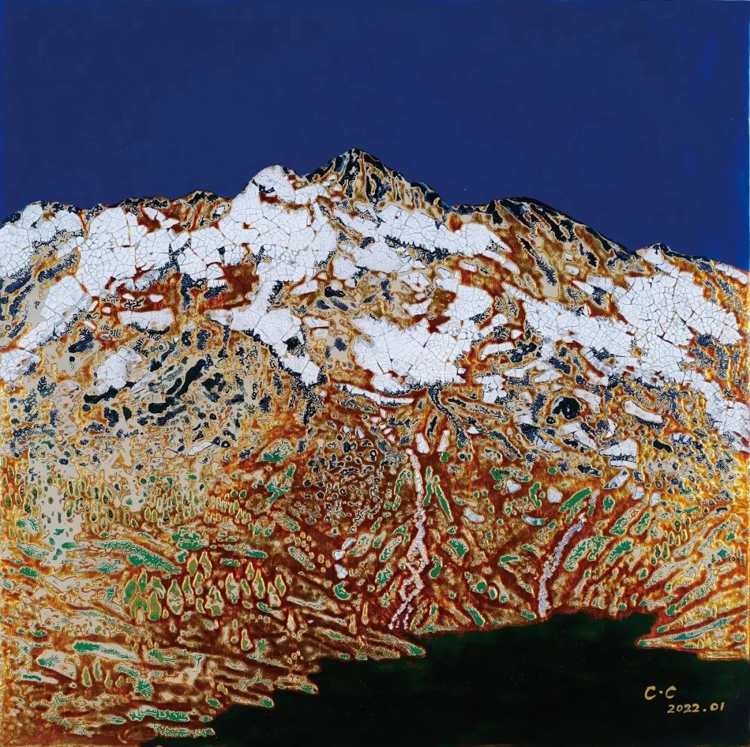 陈琛《冬山映日》40x40cm 漆画 福建