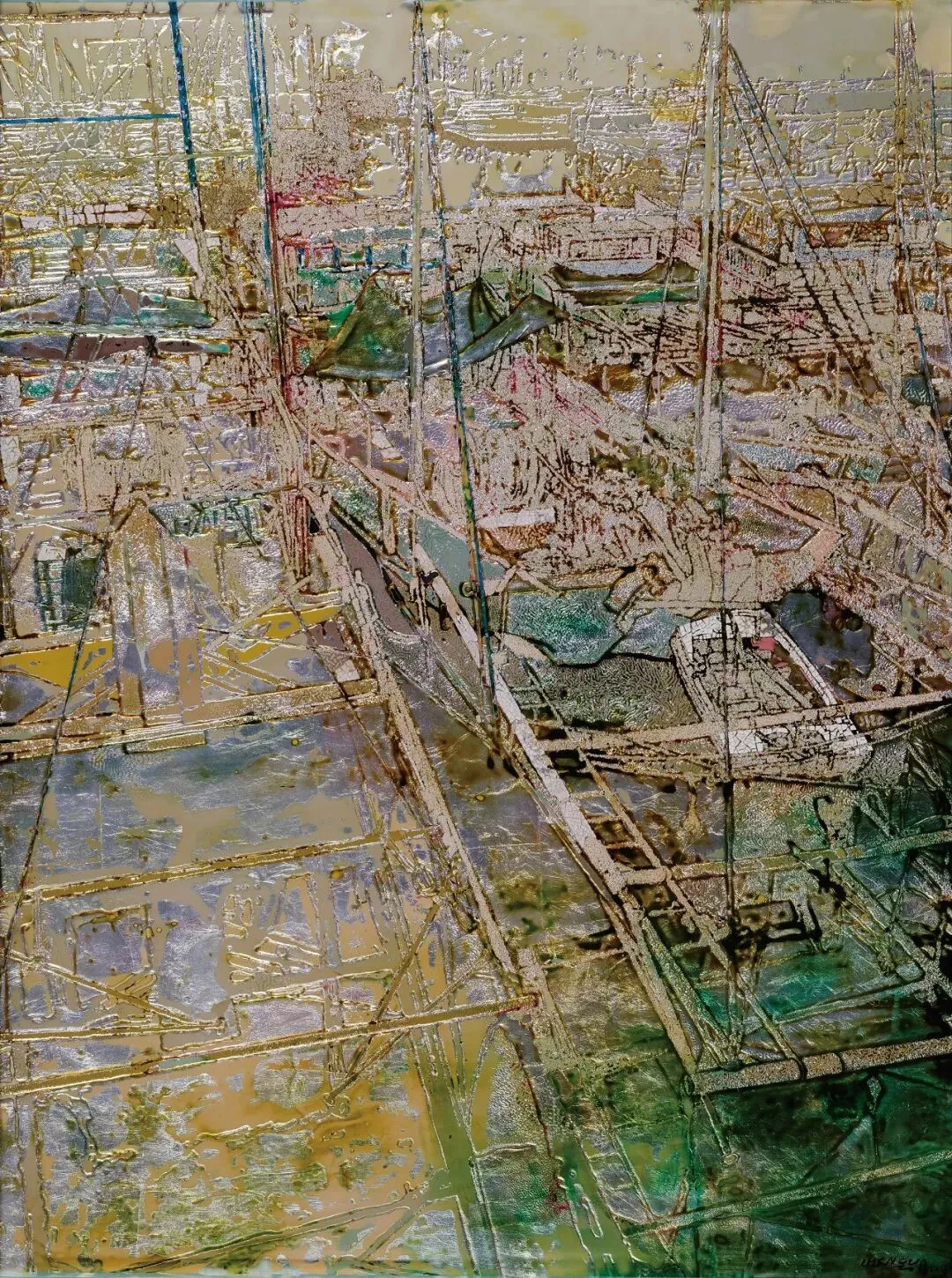 陈国《舟横波影夕阳西》100×120cm 漆画 福建