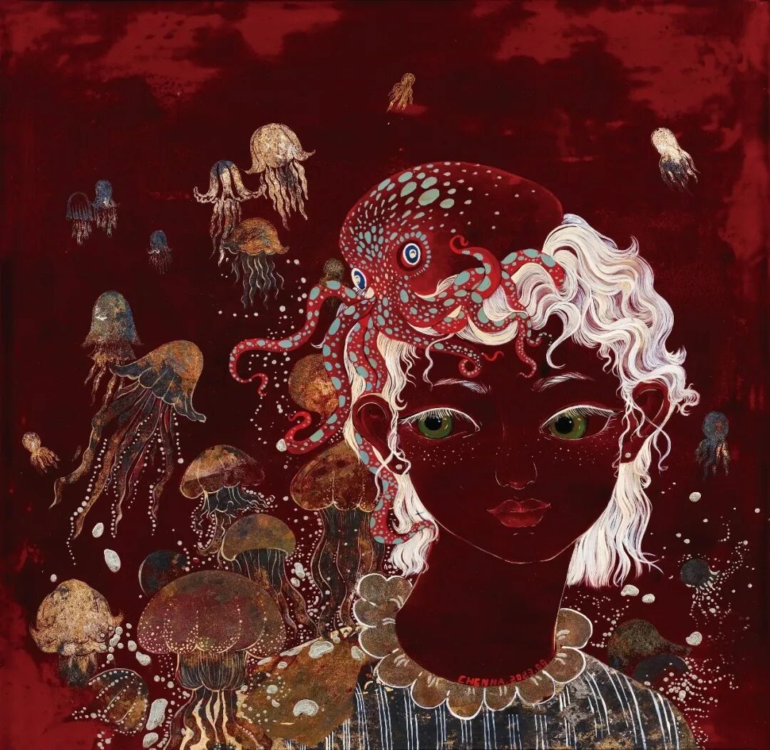 陈娟《寂》漆画70x60cm 河南