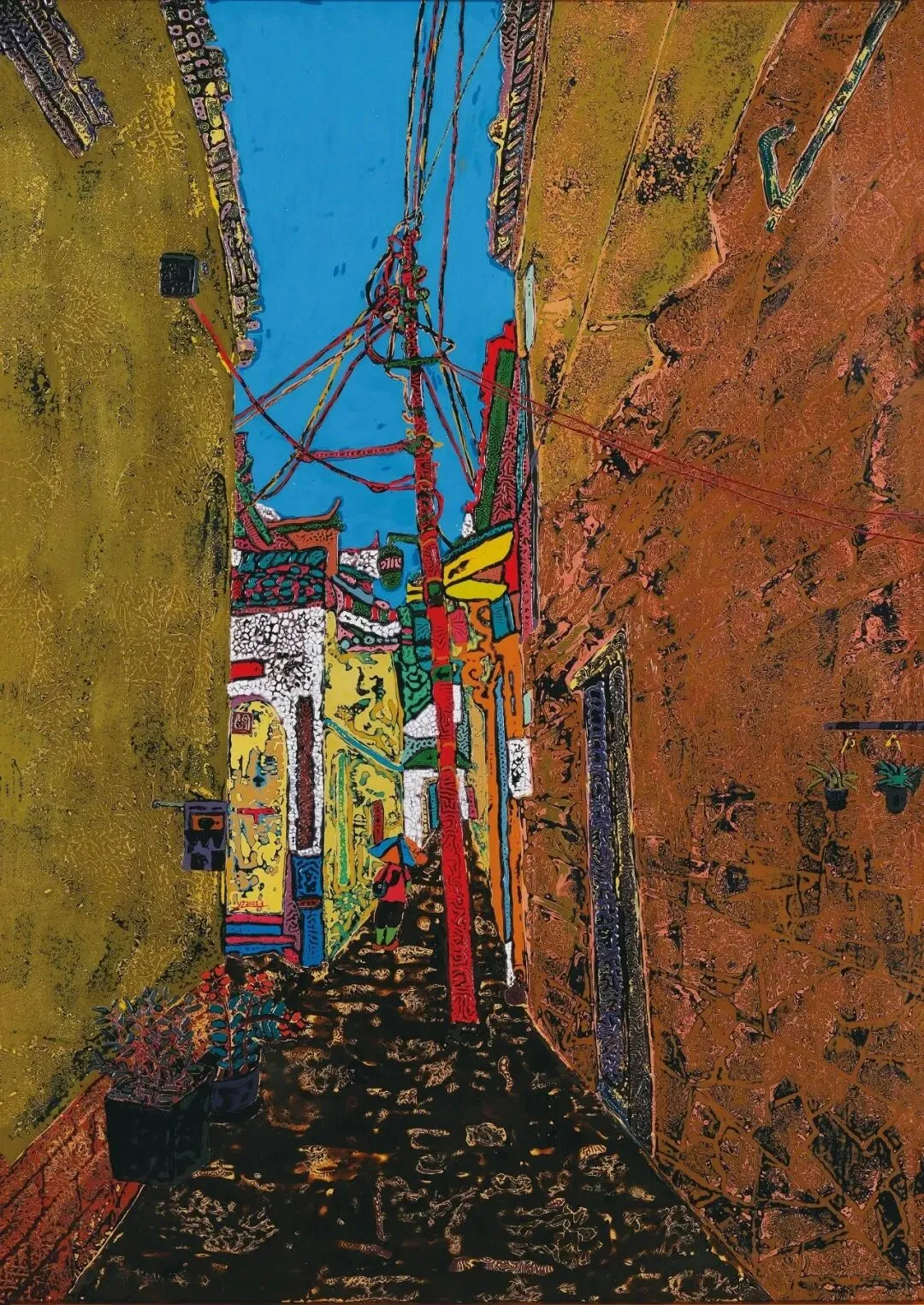 陈少英《巷陌情衿忆》70×50cm 漆画 福建