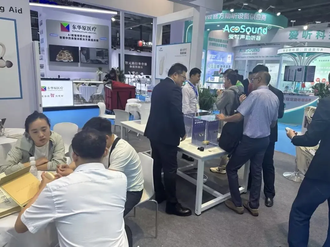 开展首日,展台前便聚集了来自行业内外的大量访客。既有寻求技术合作的渠道商,也有关注老年群体听力健康解决方案的人群。人们与现场工作人员深入交流,整个展台气氛活跃。