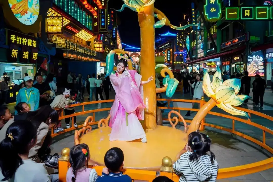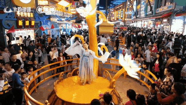 夜幕降临,【灯火兰山·新琅琊街区】灯火辉煌,宛如梦幻世界。你可以在仿古街区里闲逛,感受夜晚的热闹氛围,体验「飞越琅琊」高空威亚;或者去看一场《夜画琅琊》行进式游船演艺,沉浸式体验临沂的夜文化,灯光、音乐、表演交织,为你带来一场视听盛宴。