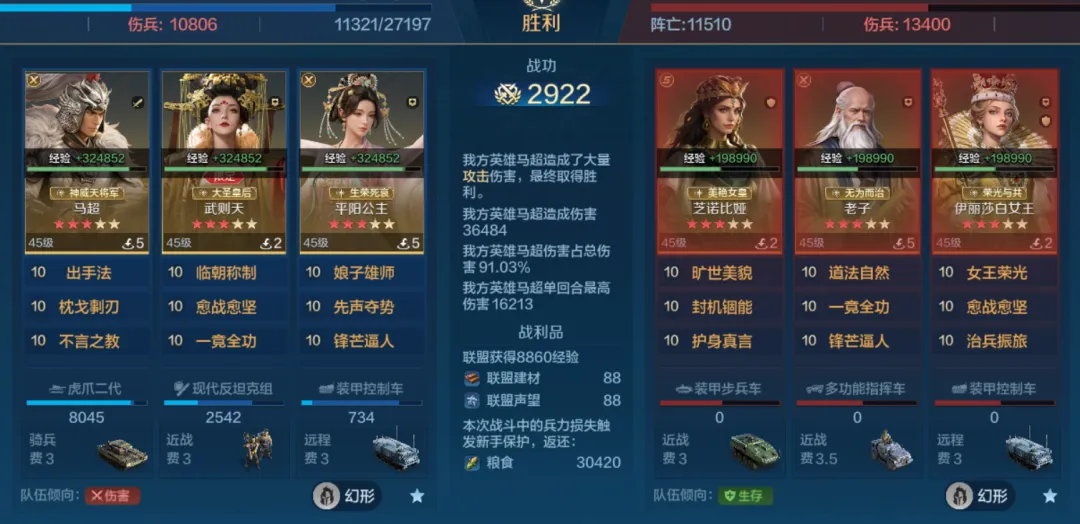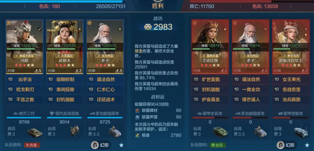 上述战报可以看出本队在马超加入后输出能力大幅度提升。