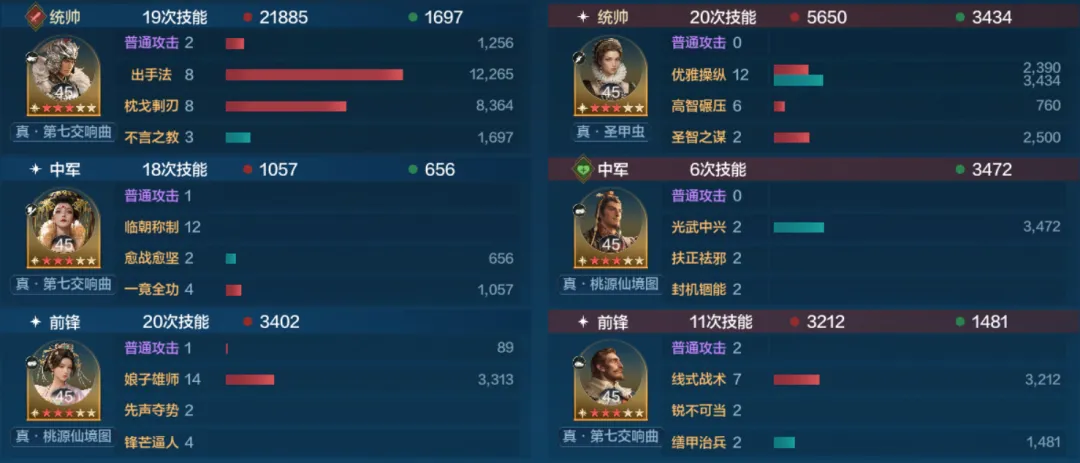 机制分析:我军全体造成伤害叠间奏层数,配合伤口状态间奏提供减伤+统帅输出,提高输出核心的输出+生存。