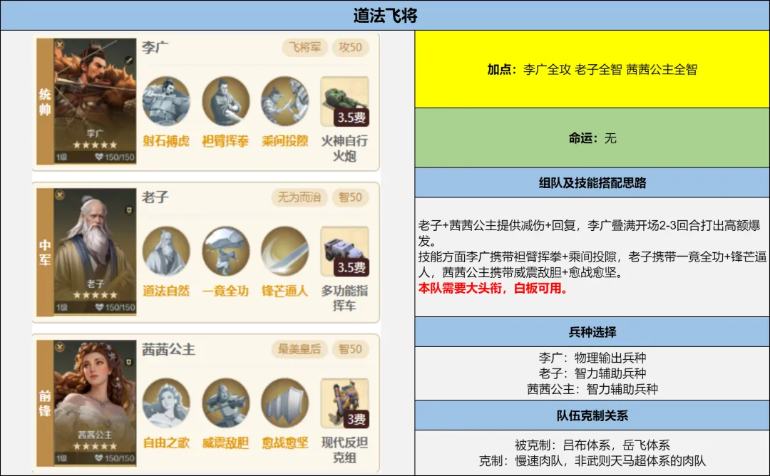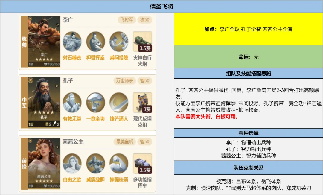 2.非常适配李广,能有效提高李广队的生存与输出能力。