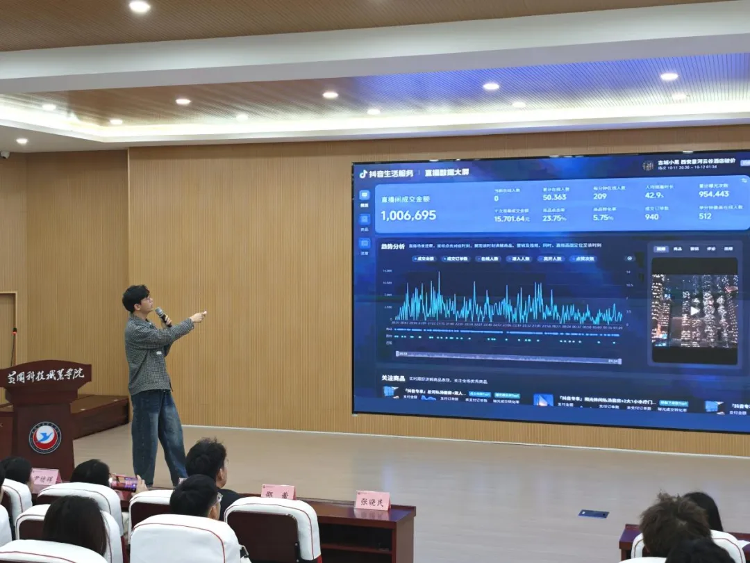 项目负责人张晓民结合多年行业实战经验,围绕当前新媒体行业趋势展开分享。他指出,传统内容创作模式效率低下,AI技术正全面重构新媒体电商生产力,从文案生成、视频制作到电商运营,AI工具可大幅提升工作效率,降低实操门槛。本次项目聚焦四大核心赛道,为大学生提供清晰的成长方向。