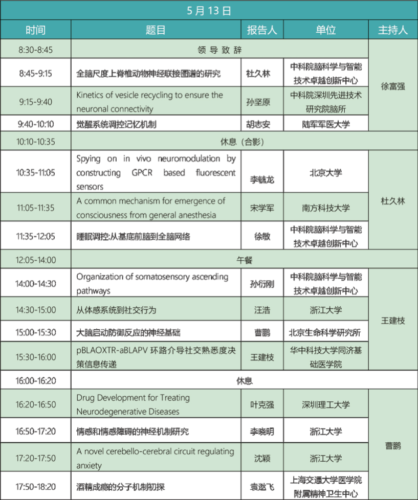 5月12日:会议报到及神经环路与麻醉/睡眠专场报告