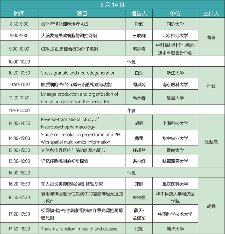 2023年5月12至5月18日期间,众多国内知名专家和学者将带着他们最新的研究报告与技术相聚本次研讨会。与此同时,本次会议培训班涉及单细胞测序、病毒环路示踪、神经递质探针、代谢动力学、脑组织透明化、显微成像、脑片电生理、膜片钳、在体电生理、动物行为分析、双光子钙成像、原位杂交、光遗传学、小动物MRI、MRI数据处理等诸多神经环路相关技术。
