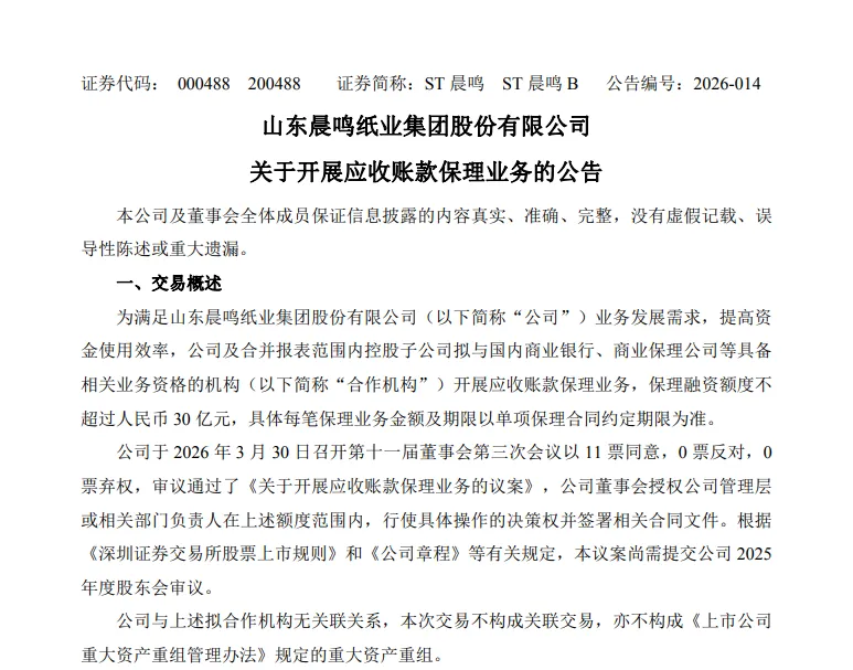 来源:ST晨鸣公告