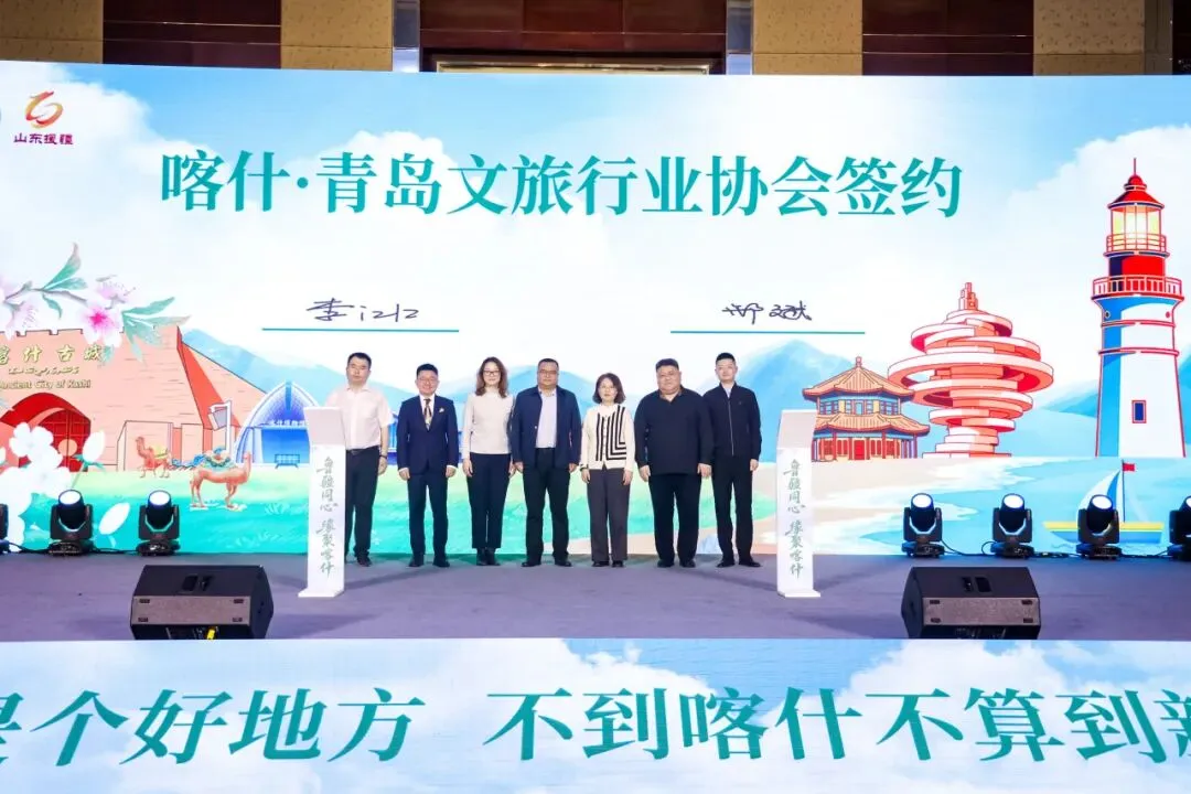 签约环节,喀什与青岛两地文旅行业协会签署战略合作协议,将在旅游线路开发、产品推广、客源互送、人才交流等方面开展深度合作,助力“引客入喀”,推动两地文旅资源价值最大化。此外,现场还设置文旅体验区与喀什礼物市集,展示非遗技艺与特色物产,将喀什的风土人情、民俗文化、特色物产生动立体地呈现在嘉宾面前,引得现场嘉宾频频驻足关注。