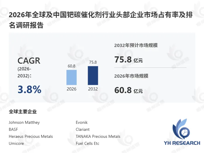 以下内容来自恒州诚思YHResearch出版的《2026年全球及中国钯碳催化剂行业头部企业市场占有率及排名调研报告》,同时提供英文,日文,韩文等不同语种版本报告。