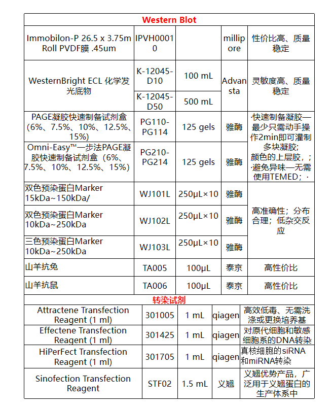 公司代理品牌如下:Qiagen、Promega、天根、ACD、Tocris、R&D、Novus、义翘神州、Stemcell、APEx bio、雅酶、Eppendorf、ABKbio、bioss、洁特、默克、模基生物、佰嘉等。