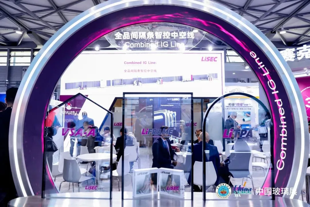 李赛克(LISEC)展示的“超级中空线”覆盖刚性与柔性间隔条加工,实现中空玻璃生产全流程自动化。