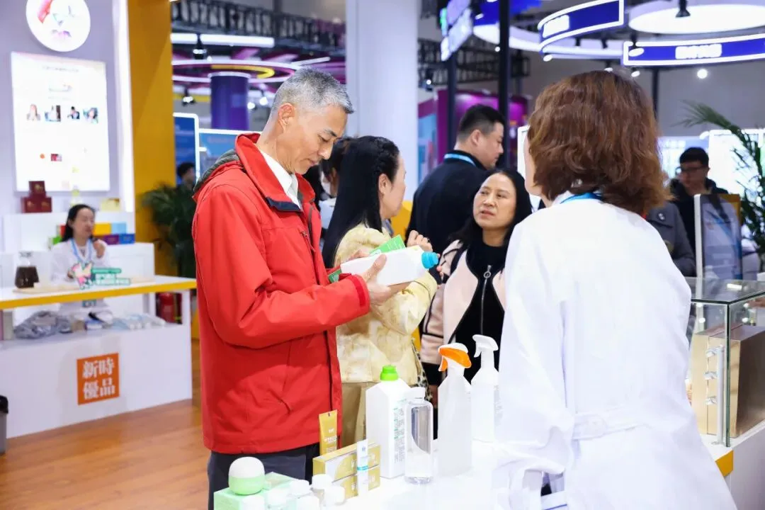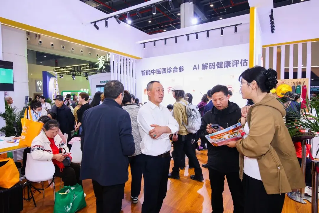 开展首日,新时优品展区人潮如织,成为展馆的焦点。四诊合参智能设备体验区排起长队,参观者争相体验科技与传统中医相结合的智能化健康监测服务;产品展示区,工作人员耐心讲解各个健康解决方案,并提供新品试吃试饮,吸引众多参观者、创业考察人驻足咨询。