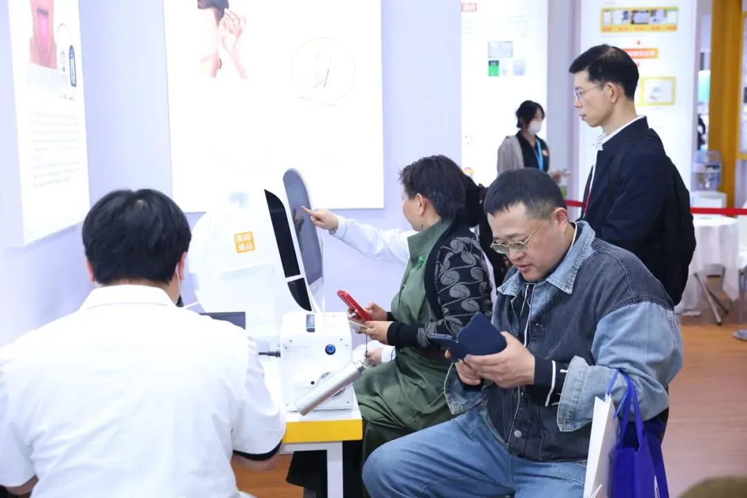 公司作为大健康领域的央企代表和连续四年参展的“老朋友”,再次受邀参加此次行业盛会。新时优品展区位于展馆核心位置,按照健康管理服务中心店面样式设计,完整呈现健康监测、健康评估、健康干预的全流程健康管理服务,成为本届健博会的一大亮点。
