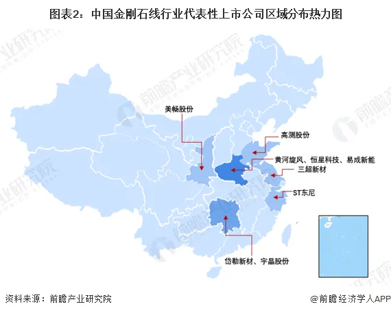 从区域分布看,中国金刚石线生产企业主要分布在河南、陕西、江苏、山东等省份,其中河南的金刚石线上市公司较多,主要有黄河旋风、恒星科技、易成新能。