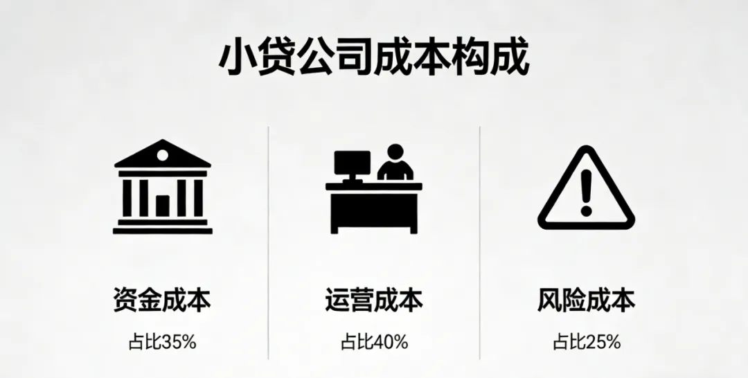 从行业实际情况来看,小贷公司不能吸收公众存款,资金来源主要是股东自己的本金、银行给的贷款额度、以及资产证券化等方式。它们的综合资金成本普遍在5%到8%之间。在此基础上,小贷公司还要承担3%到5%的坏账准备,以及2%到3%的运营和风控成本。把这几项刚性成本加起来,多数公司的盈亏平衡线已经接近甚至超过年化12%。