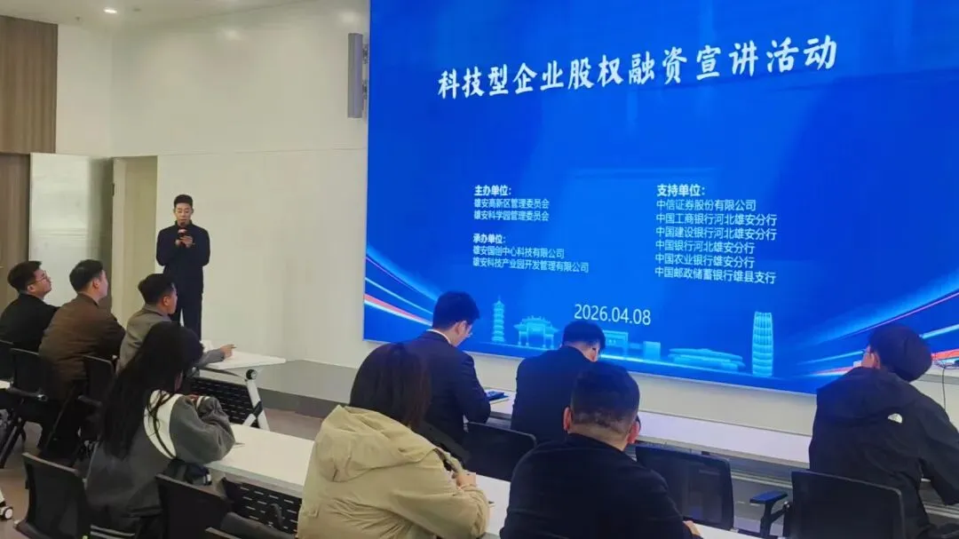 4月8日,“创新驱动·金融助力”科技型企业股权融资宣讲活动在高新区新质生产力创新孵化器举办。活动邀请了雄安新区各科创企业有关负责人参加。