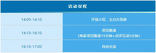 1、每期路演项目5个席位,如果通过审核的项目达到五个,则顺延至下一期,请有意向项目尽快报名。
