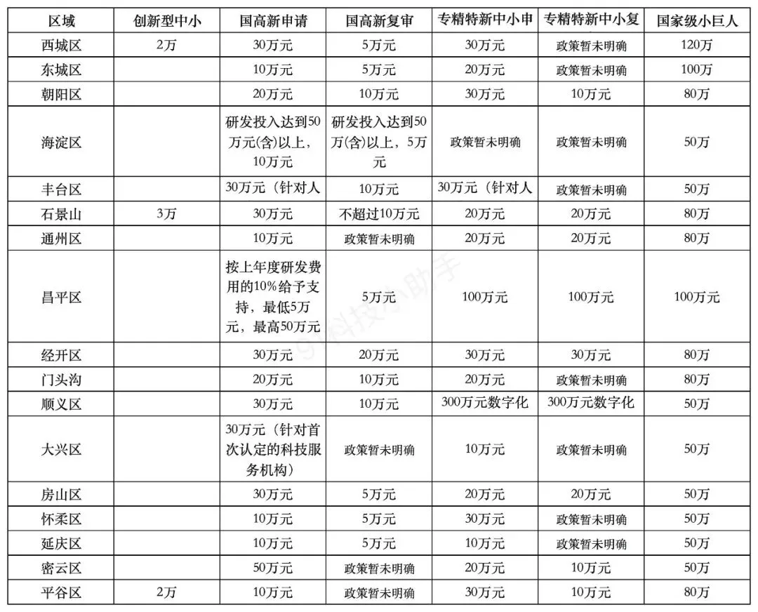 汇总了北京市各区科技企业的奖补政策,具体执行请以各区官方最新文件为准。
