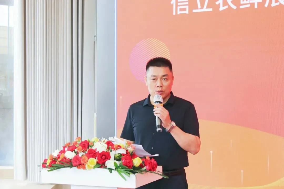 尚佳膳食总经理杨博平致辞,介绍了农食速配生态平台正式发布,阐述其依托资源与核心手段,介绍两大实体项目,呼吁团餐同仁共建生态、提升效率。