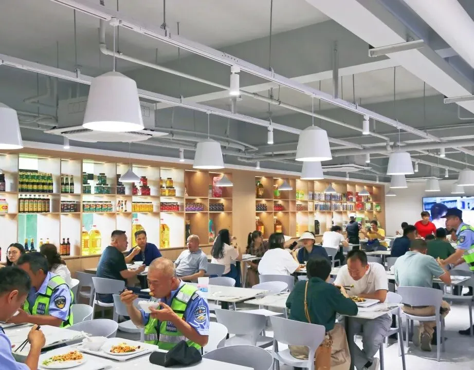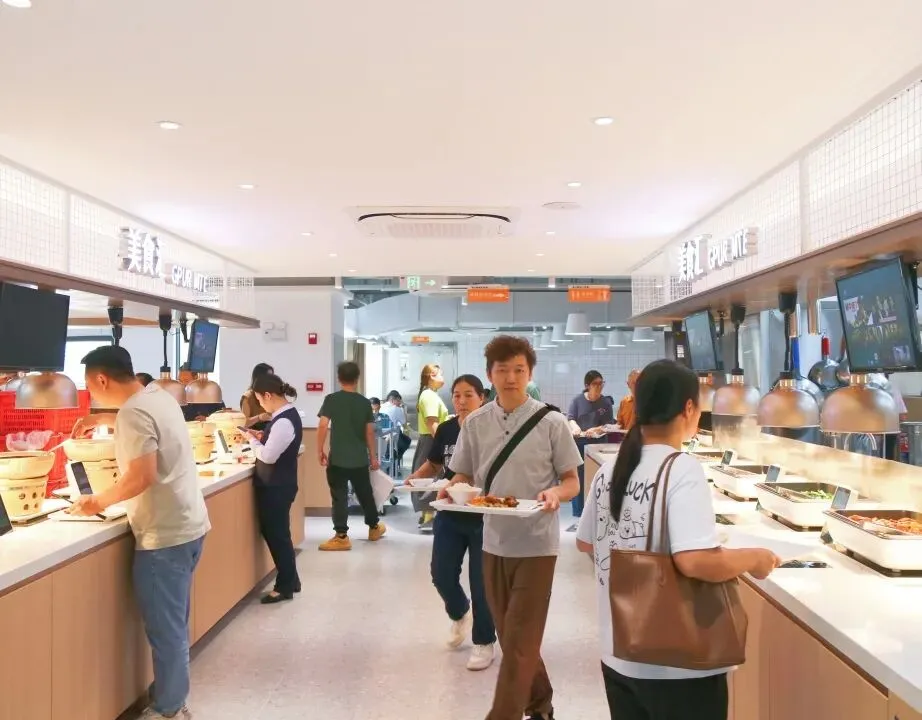 该食堂面积1500平方,总投资逾500万,不仅仅是一个就餐场所,更是集展示、研发、活动于一体的智慧化餐饮体验中心。