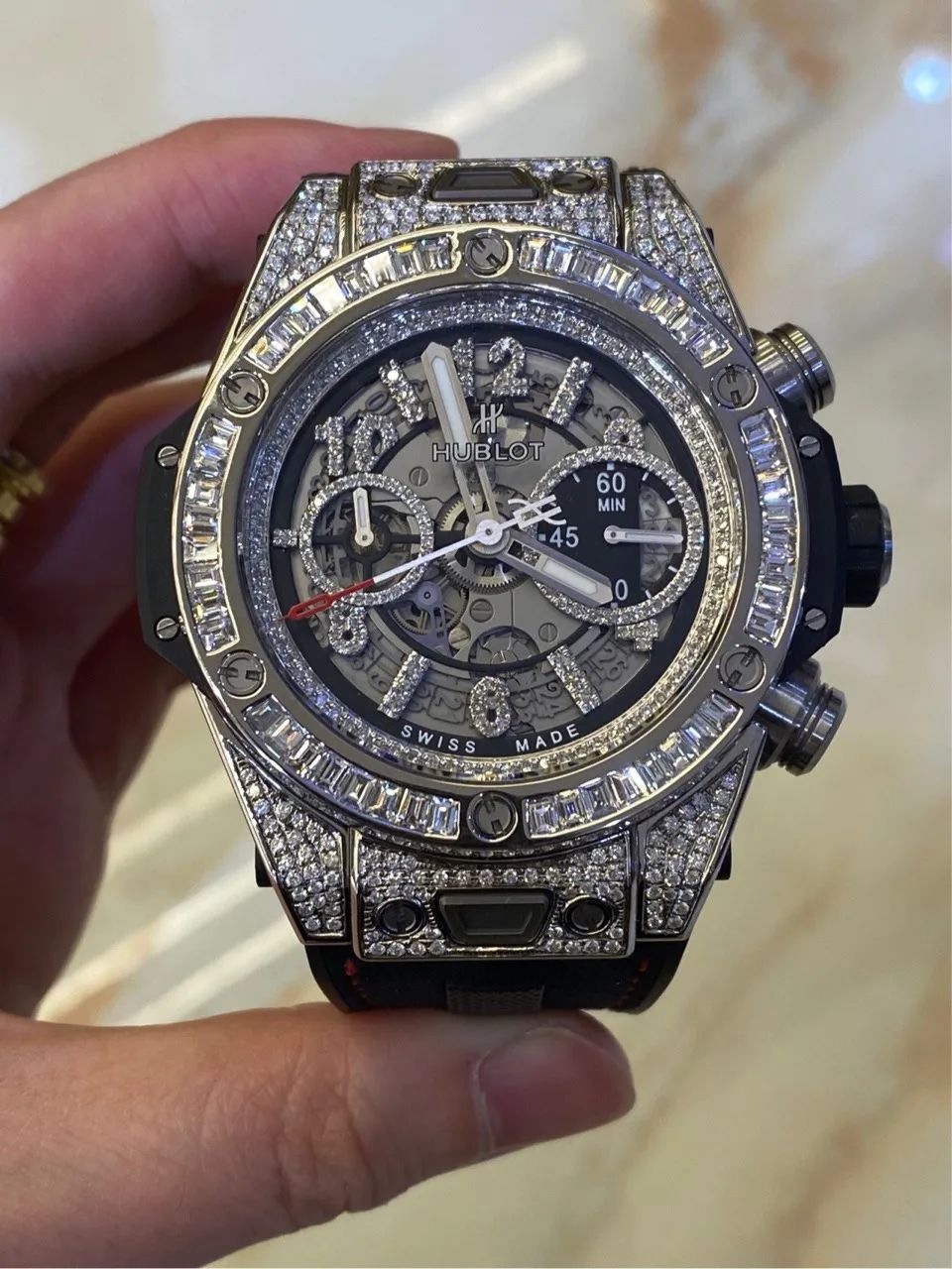 【单表】宇舶BIG BANG大爆炸系列411.nx.1170.rx.0904 表径45 钛合金材质 超大颗冰糖钻外圈 满钻表壳 镂空表盘 日期显示 计时功能 原钻公价548900 好价?️
