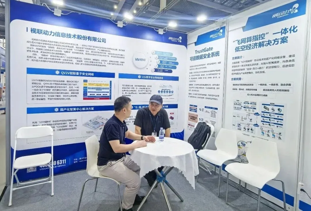 在低空经济领域,视联动力推出的“飞网算指控”一体化低空经济解决方案,采用V2V视联网协议与国产化网络设备,构建低空经济一体化网络支撑体系,提供“连接+算力+能力”的融合服务,具备完全自主可控、高安全抗攻击、低延时高确定性传输、超远距离无人机精准操控等优势,促进低空经济与算力产业深度融合。多位专业观众就方案的超远距离无人机操控及其应用场景向工作人员进行了咨询。