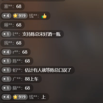 今天开播第一个品是来自茅台集团的,2017年灌装的贵宾陈酿,VIP15,浓香型白酒,52度,500ml,88一瓶!茅台是知名的酱香型白酒品牌,不过在以前出过一批浓香型白酒,采用高端工艺制作,只为了抢占五粮液的市场,这一批货是绝版,现在茅台只做酱香。别的直播间卖298,陈总直播间198,这次为了拉关注开场第一个品就破价88一瓶。3A绿标,和iso国际质量体系认证标,五星的酒质,飞天仕女图!开播第一个品,陈总价格一步到位,连99都不卖,88一瓶该讲价还是讲价。陈总:哈哈哈,我感觉我是个卖货的,我都够不要脸的,还有比我更狠的。每个人只限2瓶,拍多了我也不给你发,浓香型,现在你有钱也买不到,茅台已经不出浓香了,都知道茅台是酱酒,这个酒是以前的,为了跟五粮液竞争,五粮液做过酱香,茅台也做过浓香,高端工艺的。陈总:哥们我这个酒真的赔钱,没必要忽悠大家,我正常开播第一个品99就卖了。这不是昨晚没播,让你们点预约,说这个酒破价卖。88你们还讲什么价啊。。陈总:说破天我也不说了,每个人最多一箱,要不然不够,我真的尽力了,最多一箱!陈总:我没说过68,你差那20块钱么,如果你我之间感情差20块钱,我感觉没有意义了,我什么时候说过68,你们至于么,开播一瓶酒墨迹十分钟了。陈总:我还不如99上了,必须给我点关注点预约,一个人最多六单,准备好手速就行了。68行了吧。。。陈总心太软了,谈感情伤钱啊,这个款跟原浆不一样,2017年的贵州陈酿,这可是平陈六年啊,茅台集团的,陈总给的价格没人能做到!
