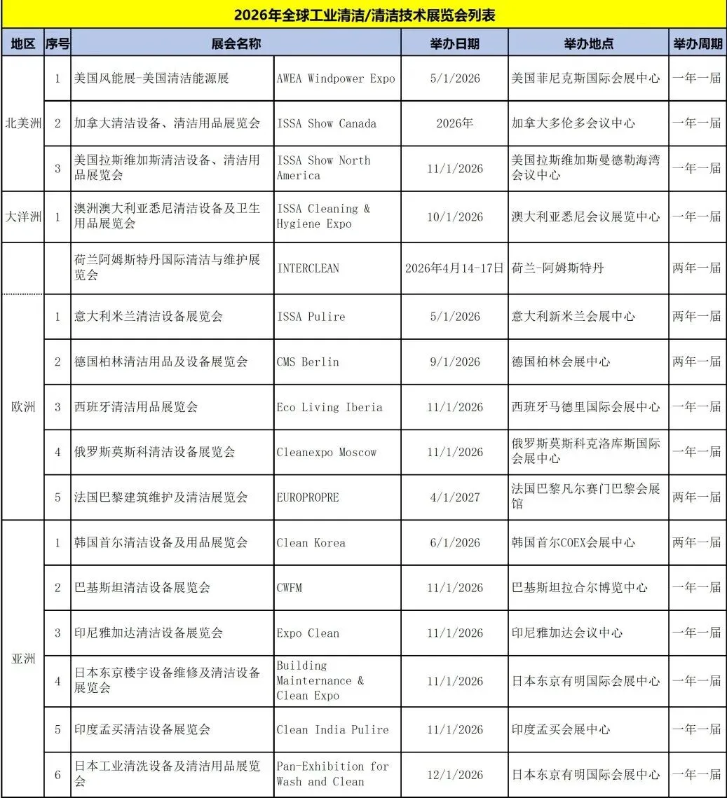2026年全球工业清洁清洁技术展览会列表