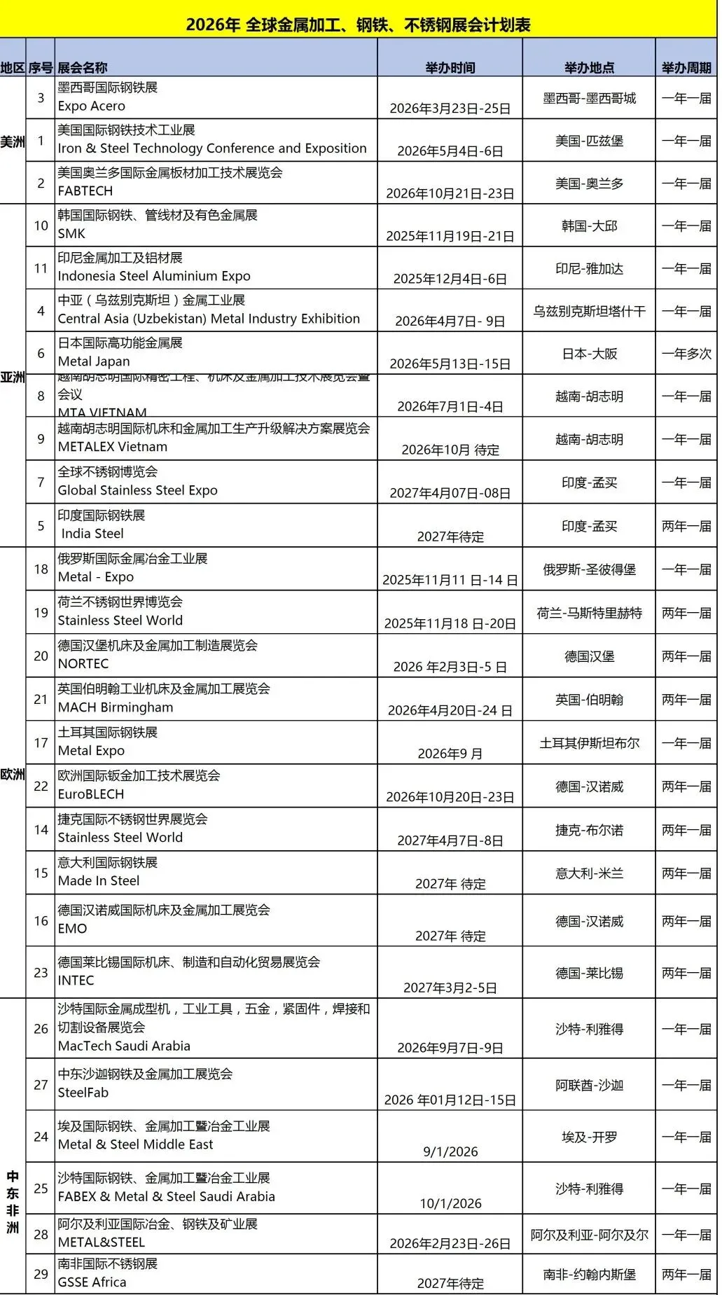 不锈钢展会计划表