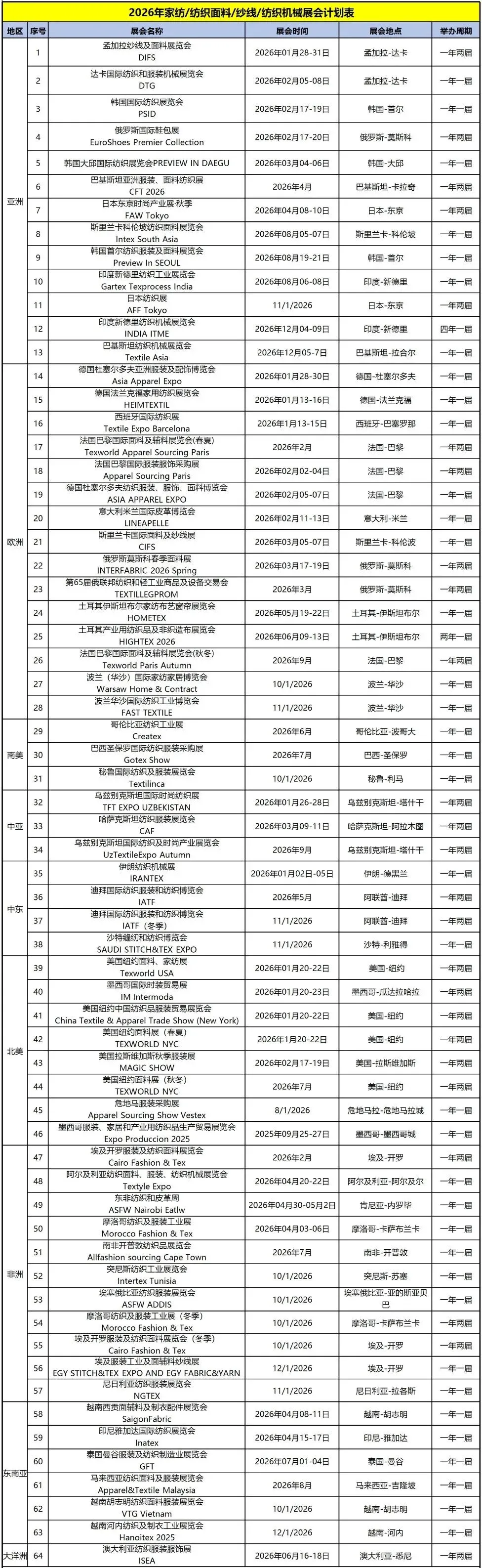 纺织机械展会计划表
