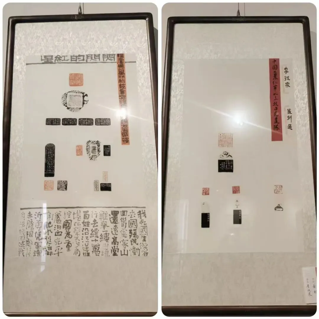 那么,这么波澜壮阔的一段历史,我们用什么方式来呈现呢?答案是——篆刻。这次展览,我们邀请了弋阳县、玉山县36位篆刻家,以刀代笔,把先遣队转战闽浙皖赣四省的英雄名字、重要战役、途经地点,一刀一刀刻进了146方印章里。
