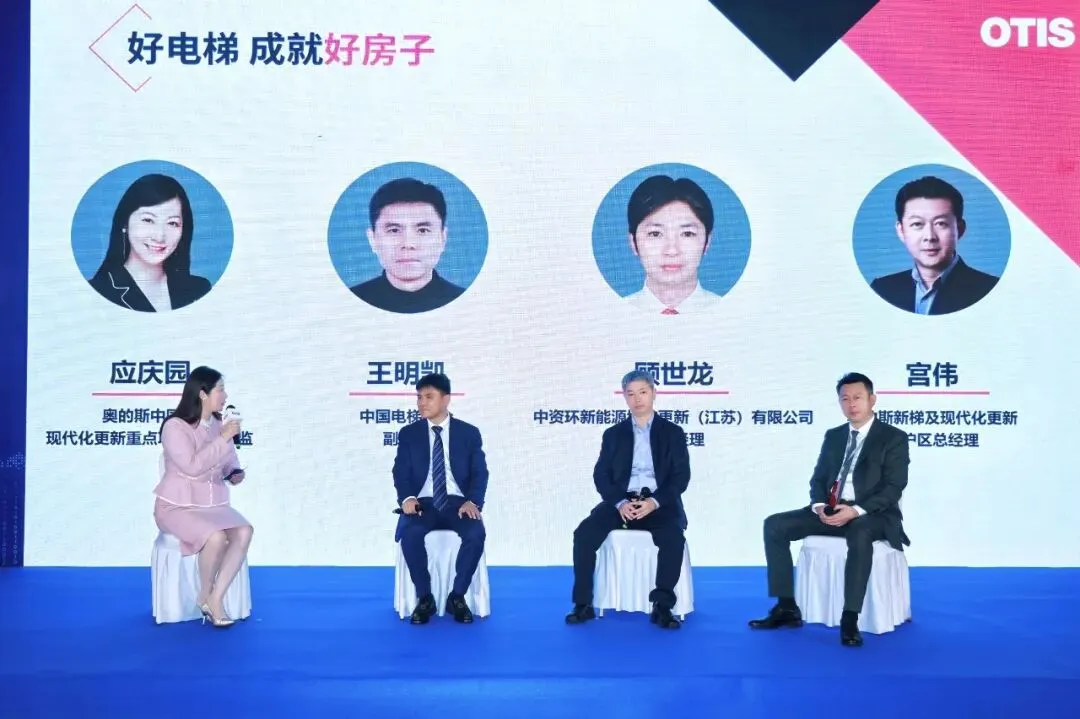 博览会期间,奥的斯举办了“好电梯成就好房子——奥的斯现代化更新宣贯交流会”,江苏省住建厅、中国电梯协会、中资环新源城市更新有限公司以及奥的斯电梯的代表参与了沙龙交流,共同探讨“好电梯”如何成就“好房子”,以及电梯全生命周期绿色循环再利用等话题。