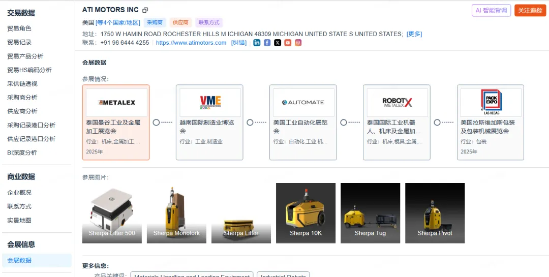 企业多维背调:全面了解企业画像,AI帮你一键分析,直接展示企业的过往贸易记录、过往参展记录、主营及交易产品、穿透供应链上下游。