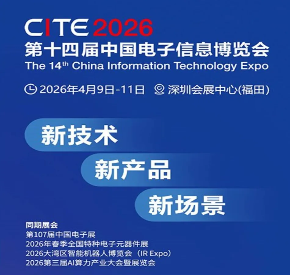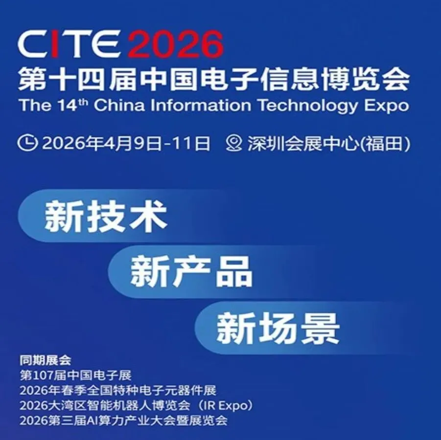 CITE2026同期举办第107届中国电子展和2026全国特种电子元器件展览会!展会以“新技术 新产品 新场景”为主题,聚焦消费电子、具身智能、集成电路应用、AI+应用场景、AI大模型&智算中心、电子元器件、特种电子元器件等前沿领域。展会将汇聚超1200+全球优质参展企业,预计将吸引超7万名海内外专业观众,紧扣2026“深圳APEC年”的国际合作契机,旨在打造一场展示中国电子信息产业创新实力的全球窗口。