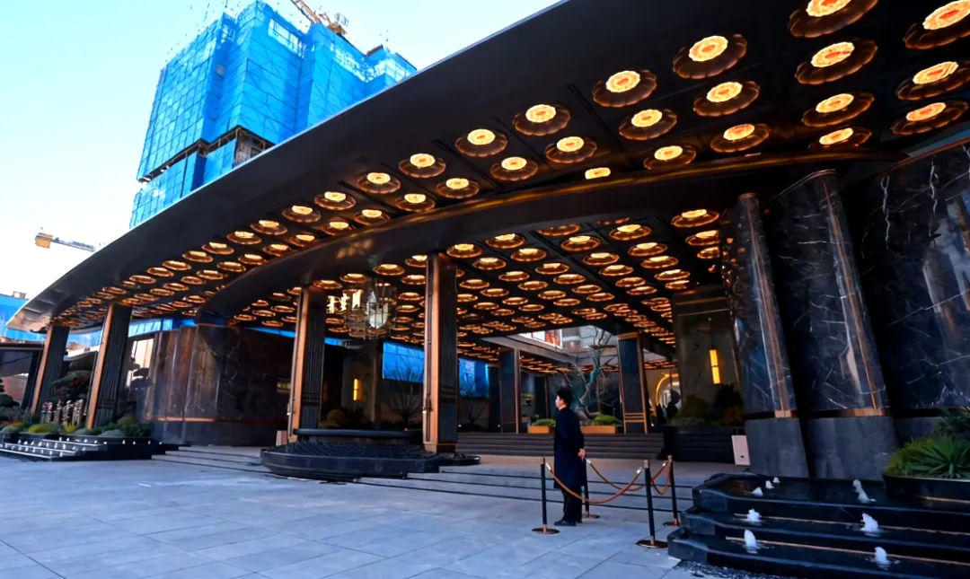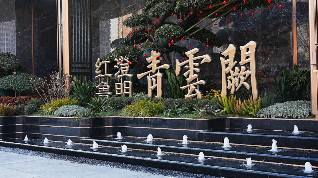 红澄鲁明·青云阙以千年宫阙形制为灵感,将匠心凝练于尺度、材质与光影之中,锻造近百米殿堂级宫阙大门,约8米高的奢石门庭,形若大鹏振翅,势如云鹤凌霄,威仪自显。