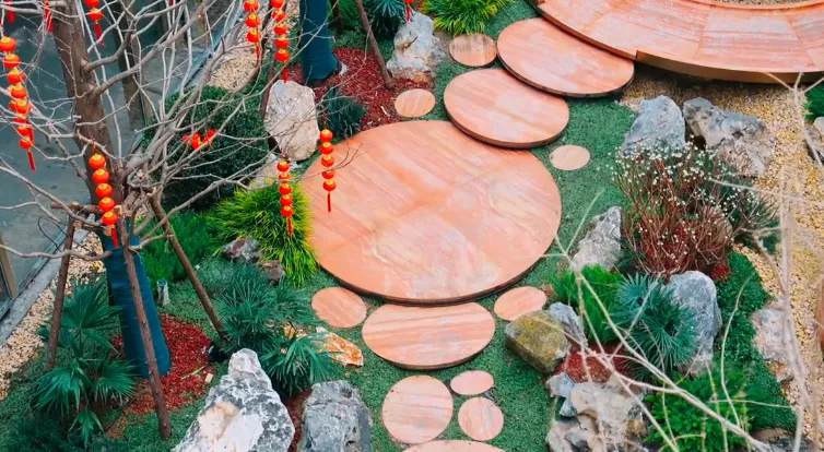约230米长轴式景观画卷,非草木的简单堆叠,而是由景观设计师反复研磨四季植配、动线衔接,匠心营造 “瑶台五阙 青云五境”,一步一境,铺就沉浸式森居大境。