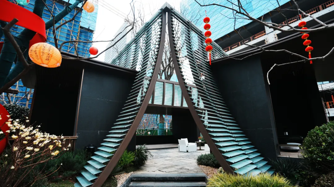 桂阙兰宫下沉式庭院,藏景于院,叠水潺潺、草木扶苏,步移景异间尽揽自然意趣,是邻里雅聚、静赏时光的谧境天地。阙影雅集特色廊架,依景而筑,在东方美学的底色中,勾勒出多元的生活场景,闲时静坐听风、赏景叙话,藏纳生活万般诗意。