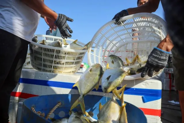 现代化海洋牧场方面,广东作为依海而生的大省,其水产品总产量、海水鱼养殖产量均居全国首位。本次展会将“海上牧场”搬进现场,让硇洲族大黄鱼、海鲈鱼、金鲳鱼、东星斑等优质水产品以活鱼形态“游”进观众视野,展示黄鳍金枪鱼陆基循环水池塘驯养、深远海养殖装备、远洋渔业及水产品加工的全产业链发展成效。