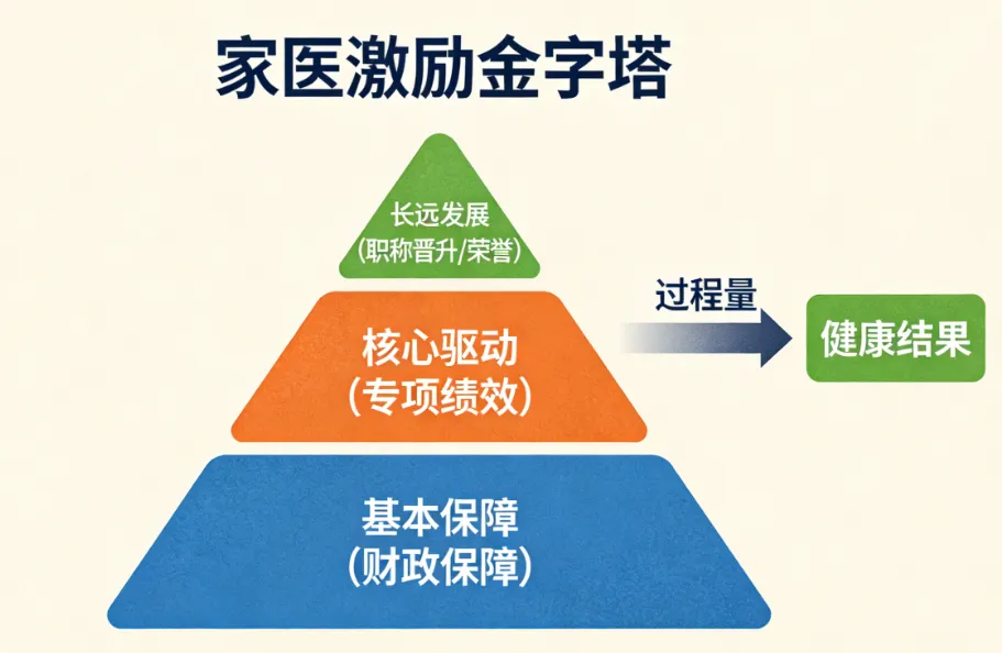 做“增量改革”,重塑分配:在现有体系内,单独设立慢病管理“专项绩效奖励包” 。奖金来源可整合公卫结余、医保激励、甚至医院自筹。关键规则是:完全与健康结果(如血压/血糖控制达标率、患者随访质量评分)挂钩,并确保奖励额度足够有吸引力(例如,使优秀家医的相关年收入增加20%-30%)。