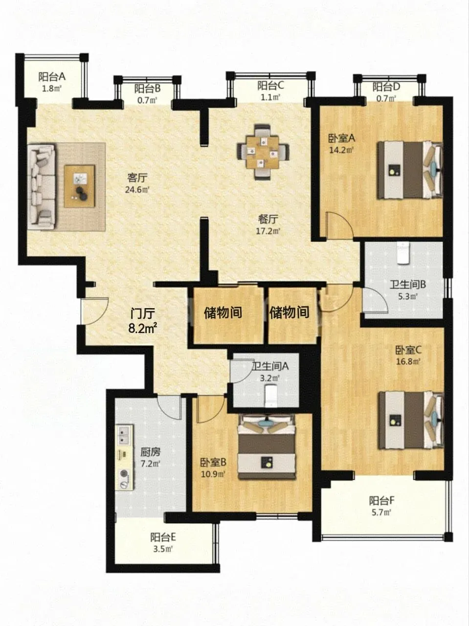 ✅ 客厅24.6㎡ + 餐厅17.2㎡
