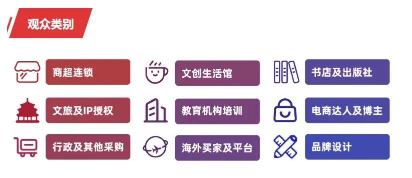 本届展会观众结构多元,精准覆盖行业全链条,具体占比如下:制造商40%、代理商15.8%、经销商14.3%、零售商及线下渠道门店(商超连锁、文创生活馆、书店等)21.3%、进出口贸易商(国际买家、跨境电商及供应链)10.9%、电商平台及其他(IP版权/授权方、学校/教育培训机构、行政采购部门等)15.9%,全方位满足参展企业的多元化对接需求。