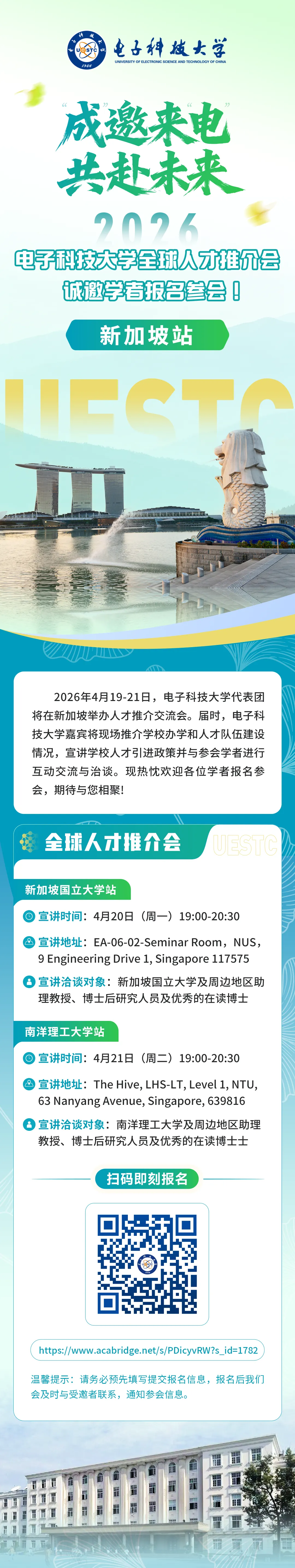 新加坡站 | 电子科技大学全球人才推介会诚邀学者报名参会