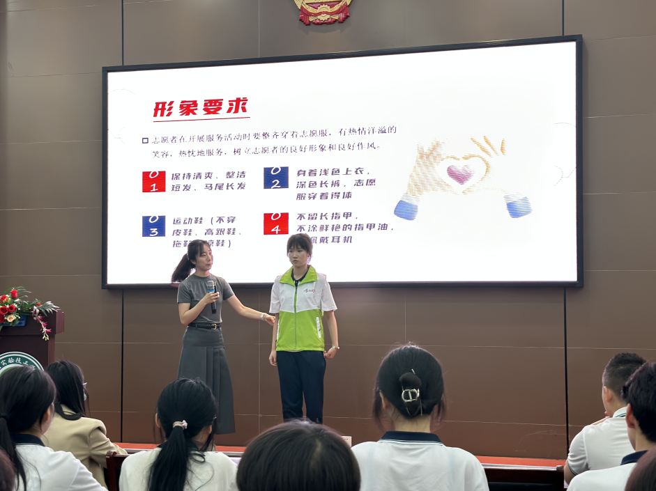厚街志愿服务专职社工为青年志愿者带来了基础礼仪、服务技巧等志愿服务专业培训,并进行了现场分组和相关工作安排。