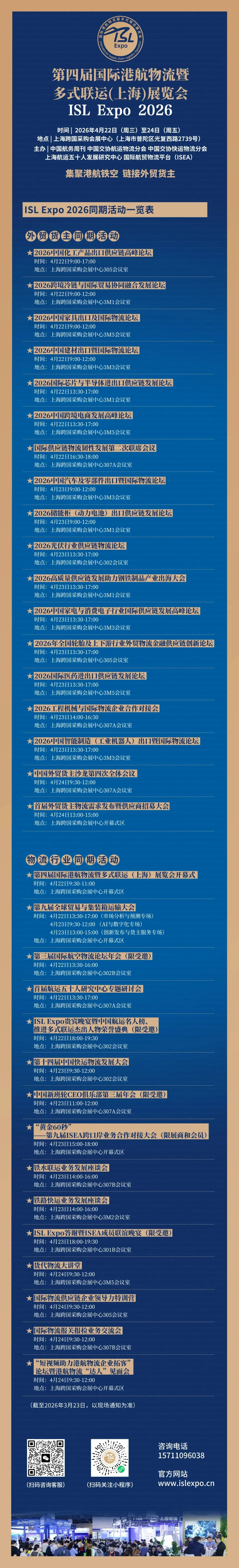 2026年4月2日距展会开幕倒计时20天,ISL Expo 2026组委会公布首批159家主要参展及赞助企业名单,期待更多供应链上下游企业参展参会,ISL Expo 2026将为各方搭建务实的交流、对接、合作平台,共促产业链供应链韧性发展。