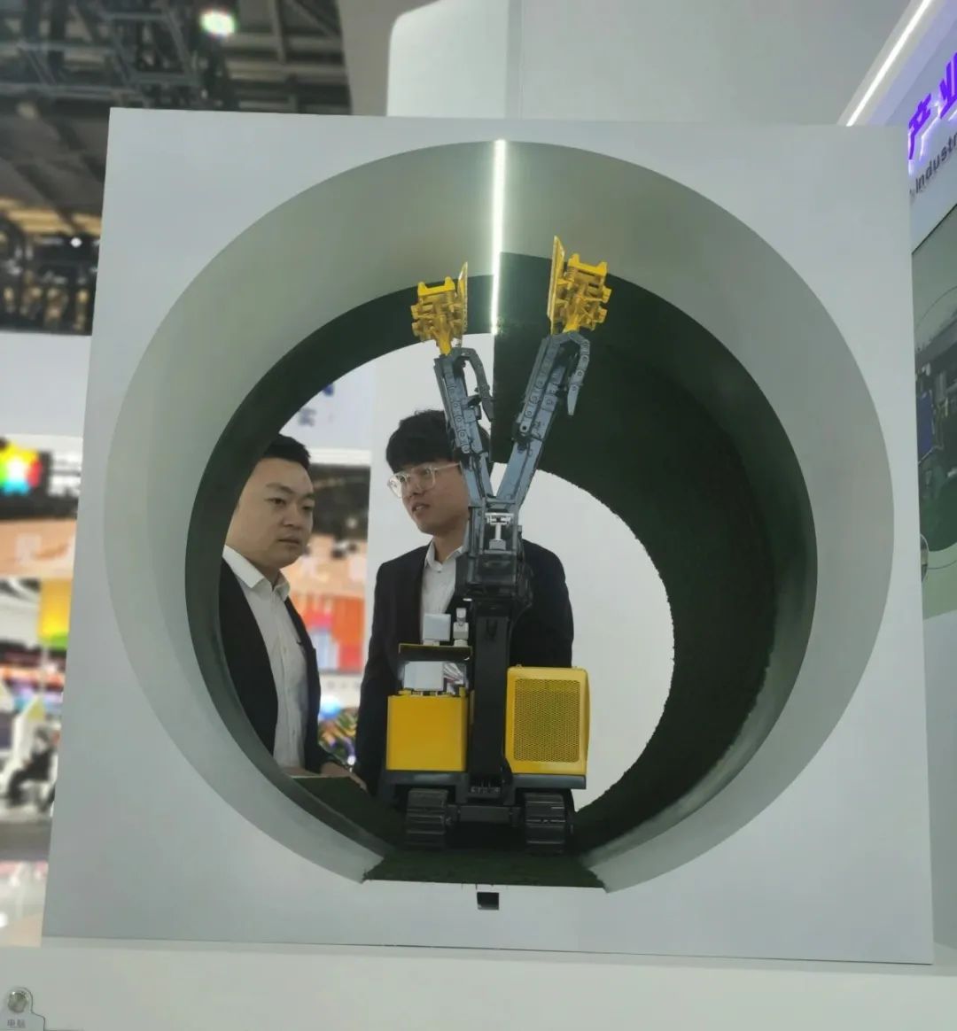 作为中广核自主研发的核电机器人代表,隧洞海生物清理收集机器人也在展览上闪亮登场。它是隧洞清理的“大力水手”,可以挥舞双臂穿梭于4300米长、近3层楼高的隧洞内,替代人工在5天内实现超2000立方米、1800吨海生物的无人化自动清理,是全球首台套大型长隧洞表面异物清除智能装备。