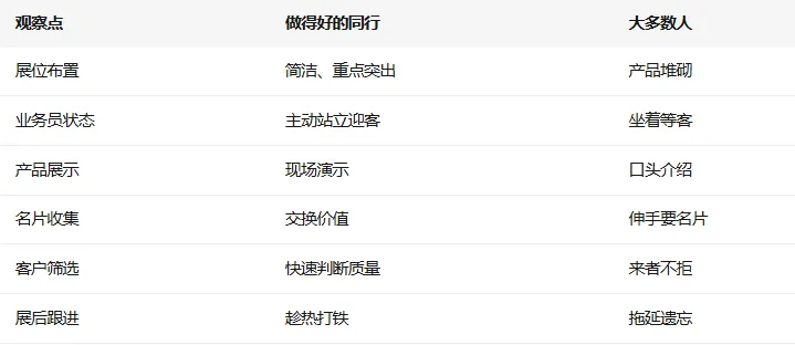 有些展位门庭若市,客户排队等着聊;有些展位冷冷清清,业务员站那干瞪眼。